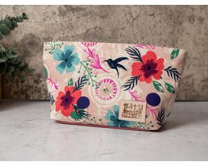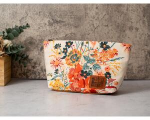 Cosmetic Bag Doria in blush corduroy and floral accent